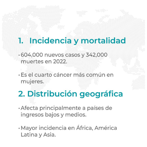 Según datos de la Agencia GLOBOCAN, el cáncer de cérvix es el segundo tumor más frecuente en mujeres en todo el mundo, provocando en nuestro país una muerte cada dos horas. Cada año se diagnostican unos 500.000 nuevos casos y cerca del 90% son carcinomas de células escamosas, que se encuentran en la superficie del cuello, mientras que el resto son adenocarcinomas y carcinomas adenoescamosos. En sus fases iniciales no dan síntomas, y en fases más avanzadas suelen causar hemorragias o molestias durante las relaciones sexuales.